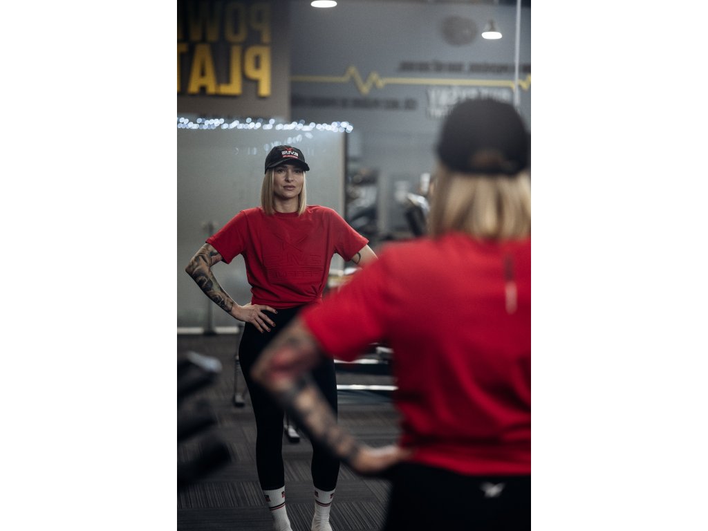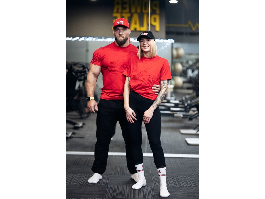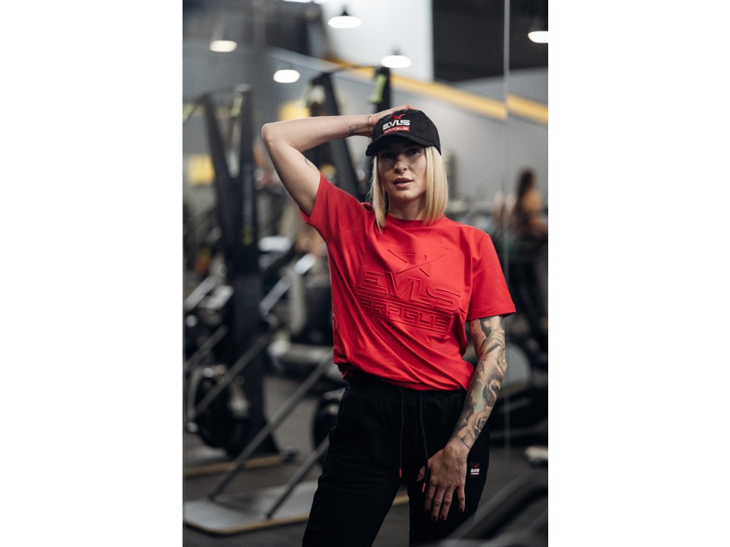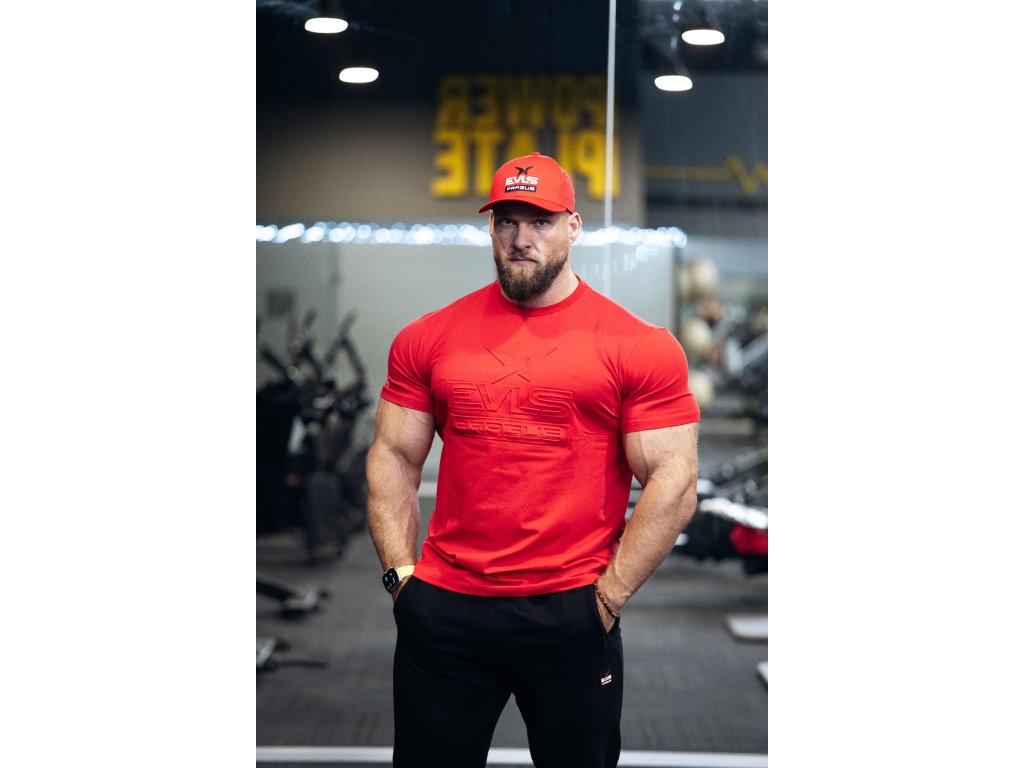 Čistý design, který okamžitě zaujme. Červené tričko s embosovaným logem EVLS PRAGUE na hrudi působí moderně a výrazně, aniž by bylo přehnané. Příjemný materiál s elastanem se pohodlně nosí a skvěle drží střih, takže se hodí jak na trénink, tak na běžné nošení.